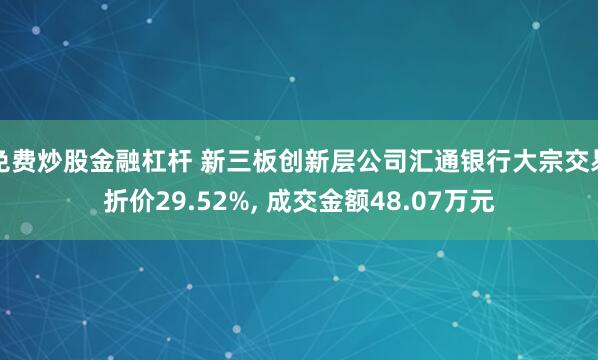 免费炒股金融杠杆 新三板创新层公司汇通银行大宗交易折价29.52%, 成交金额48.07万元